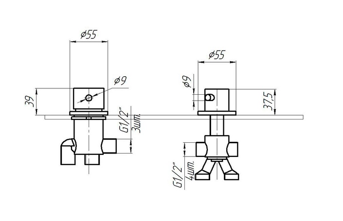 Смеситель с термостатом Zenta наружная часть д/ванны и душа для скрытого монтажа, без внутр.блока 88011, хром ZZ