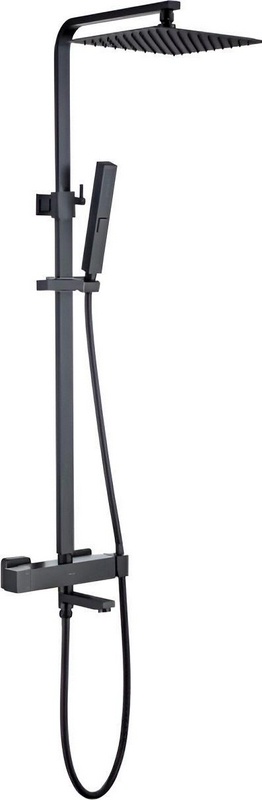 Смеситель для ванны, со стационарным верхним душем 250х250мм., душевая лейка, шланг в компл., (цв.черный матовый), Infinity ZZ