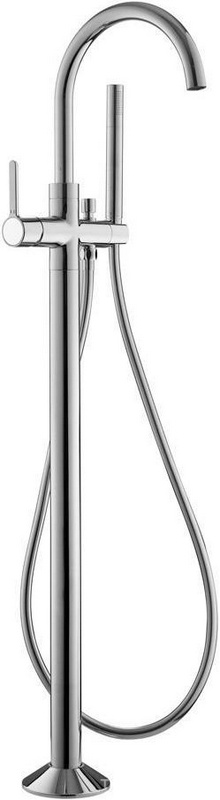 Смеситель напольный для ванны, с ручным душем и изливом, цв. хром