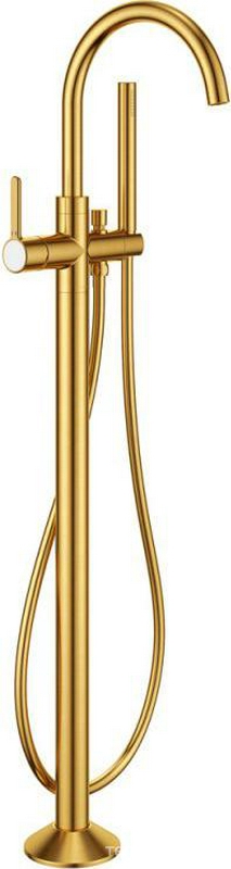 Смеситель для ванны, напольный, душевая лейка, шланг в компл., (цв.брашированное золото), Eco ZZ