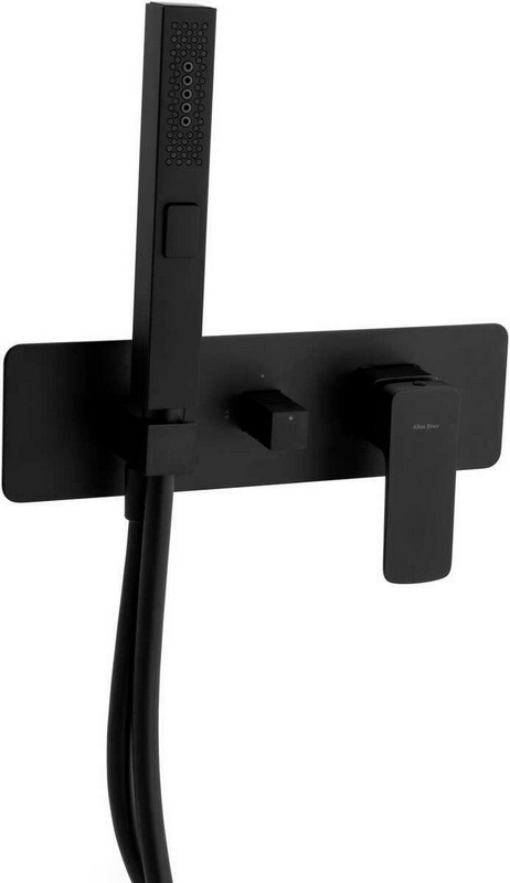 Смеситель для ванны встраиваемый в стену, наружная часть БЕЗ встраиваемой, лейка, шланг в компл., (цв.черный матовый), Apice ZZ