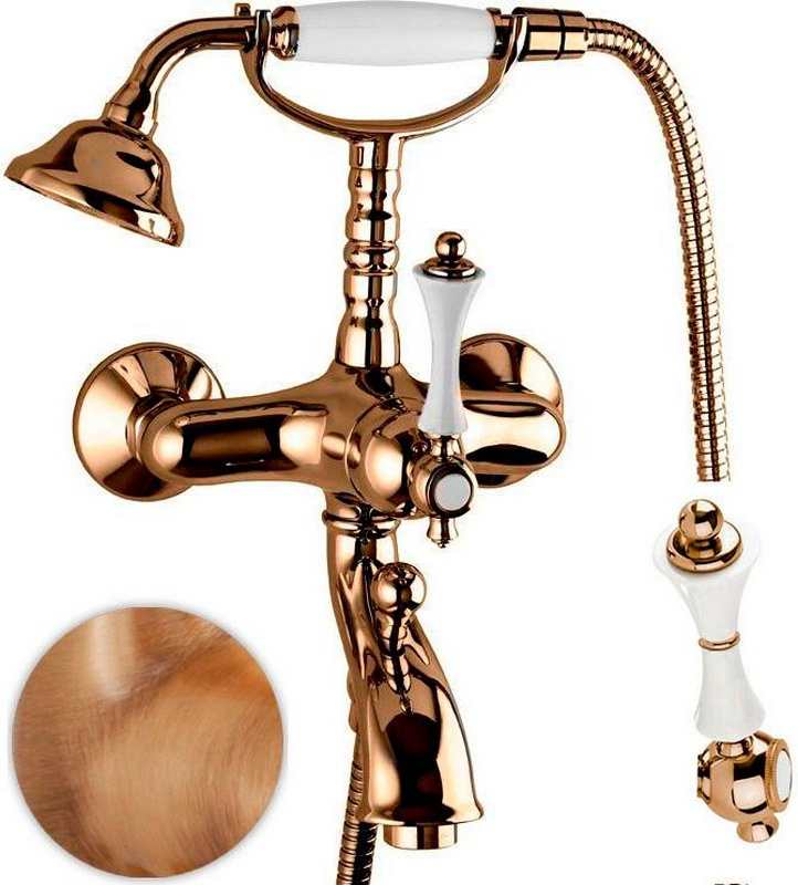 Смеситель для ванны, лейка, шланг, кронштейн в компл., (цв. бронза, ручка цв. белый), Canterbury ZZ