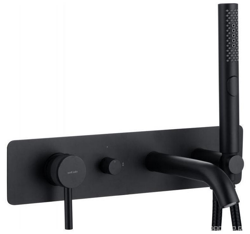 Смеситель для ванны, встраиваемый в стену, лейка, шланг в компл., (цв.черный матовый), Porta ZZ