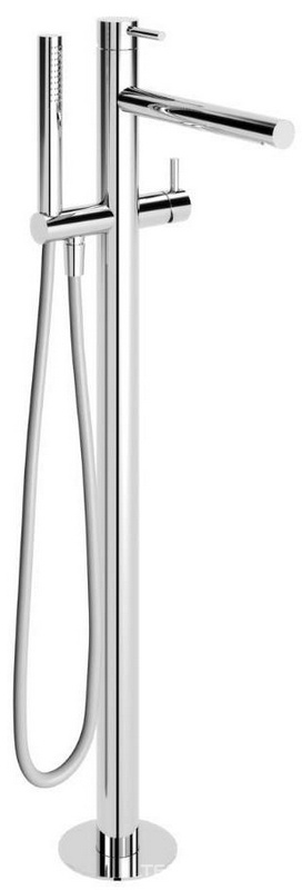 Смеситель напольный для ванны, с ручным душем и изливом, цв. хром
