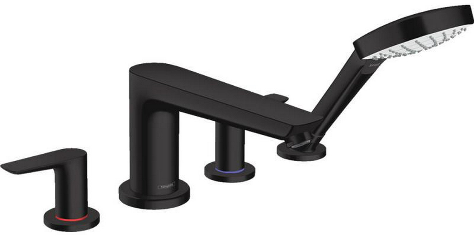 Смеситель для ванны, встраиваемый в борт на 4 отв., лейка в компл., (внешняя часть БЕЗ скрытой арт.13244180), (цв.матовый черный), Talis E ZZ