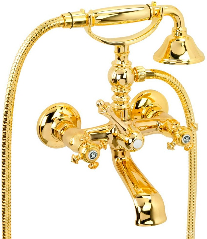 Смеситель для ванны, лейка, шланг, кронштейн в компл., (цв.золото 24k, ручка Cristallo), Nicolazzi ZZ