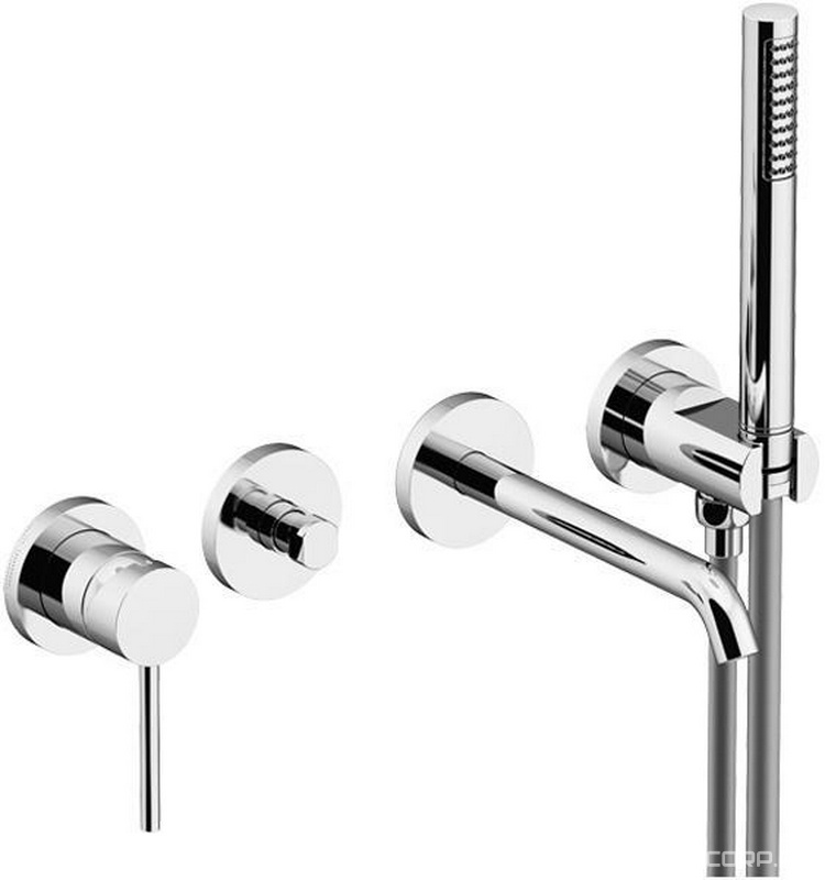 Смеситель для ванны, встраиваемый в стену, лейка, шланг, встр.часть в компл., (цв.хром), Circle Two ZZ