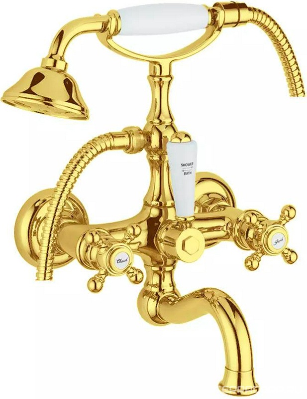 Смеситель для ванны, лейка, шланг, кронштейн в компл., (цв. Antique gold, ручка El Capitan), Classico ZZ