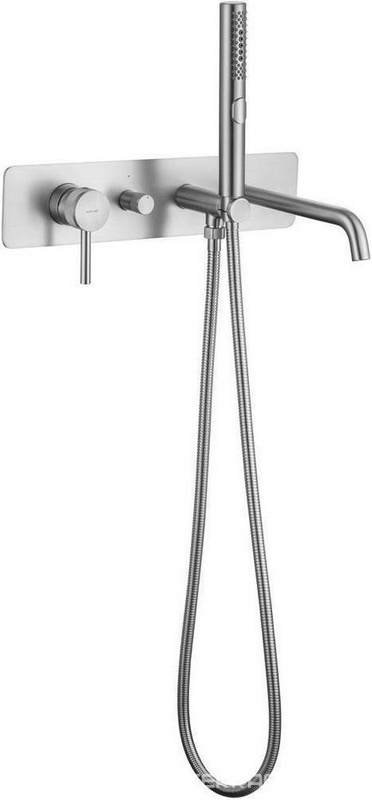 Смеситель для ванны, встраиваемый в стену, шланг, лейка, внутренняя часть в компл., (цв.браш.никель), Priority ZZ