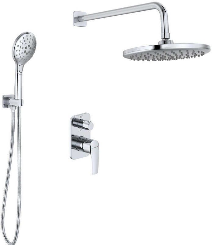 Комплект встраиваемого смесителя для душа (смеситель с внешней и внутр.частью, лейка, шланг, верхний душ с кронштейном), цв.хром