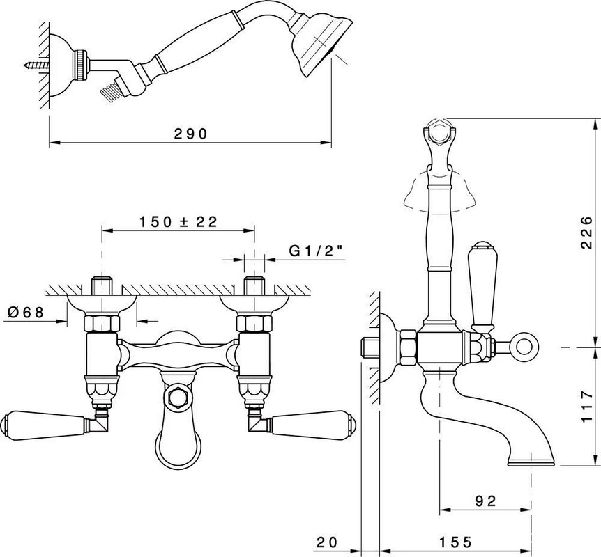 Смеситель для ванны, лейка, шланг в компл., (цв.хром), Petit Mont Blanc ZZ