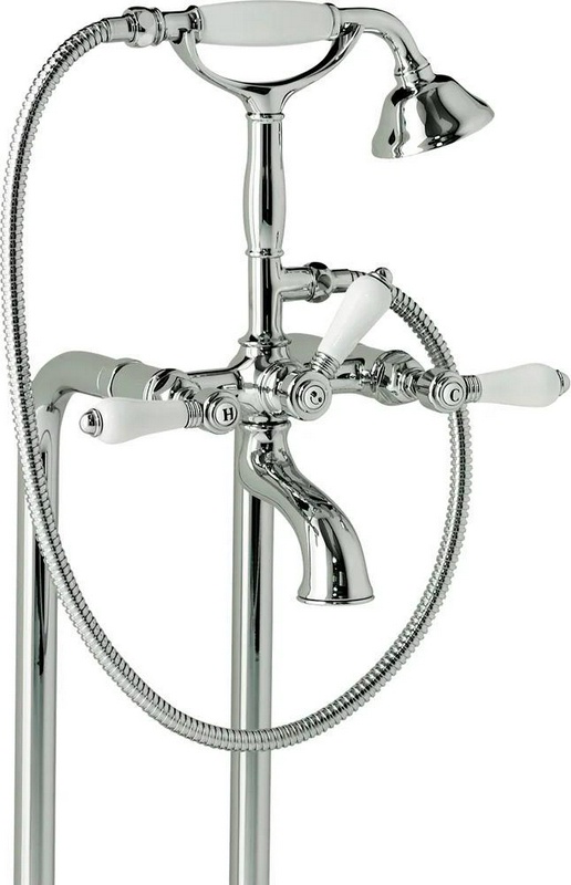 Смеситель напольный для ванны, с ручным душем и изливом, цв. хром