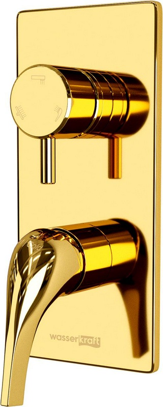 Смеситель для ванны и душа, встраиваемый в стену, внутрен.часть в компл., лейка и шланг приобр. отдельно, цв. золото глянец, ZZ