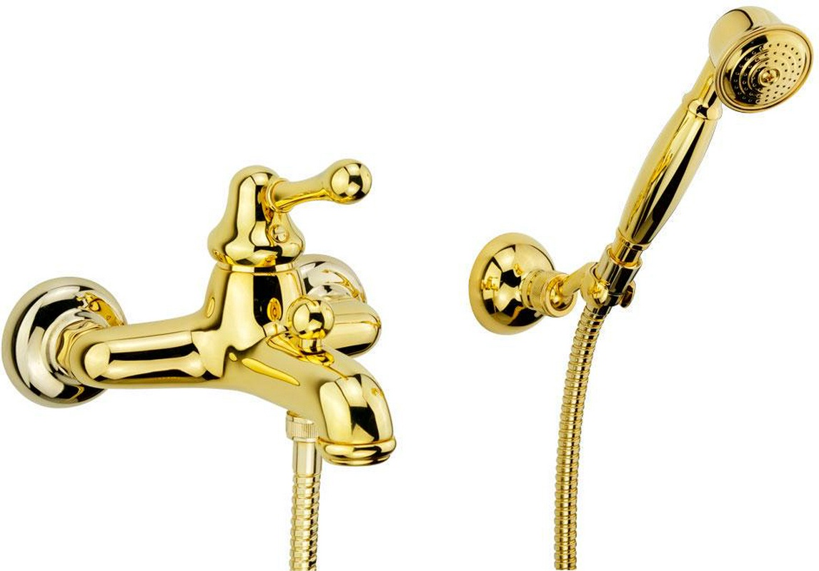 Смеситель для ванны, с душевым гарнитуром (лейка, шланг в компл.), (цв.гальван.золото, ручки 36), Impero ZZ