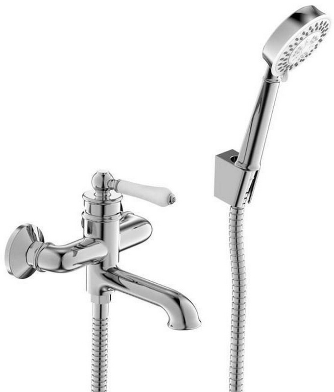 Смеситель для ванны/душа Allegro, с установочным комплектом, аксессуарами (шланг, лейка), белый/ хром
