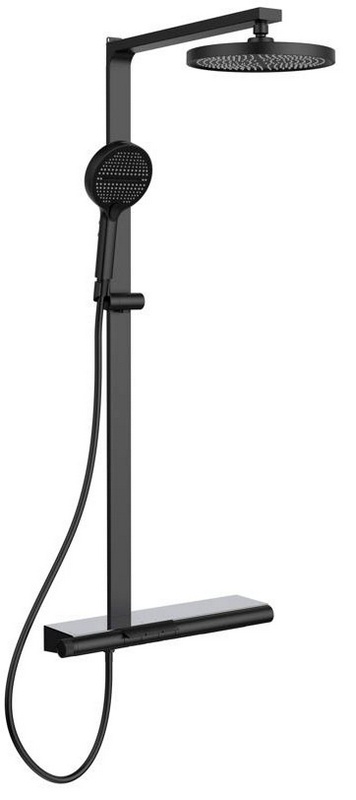 Смеситель для ванны (душа), со стационарным верхн.душем 26см., душевая лейка, шланг в компл., (цв.черный матовый), Aspire ZZ