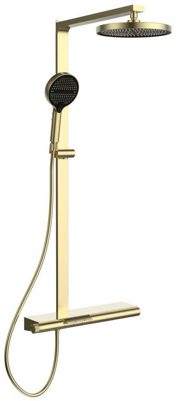 Смеситель для ванны (душа), со стационарным верхн.душем 26см., душевая лейка, шланг в компл., (цв.брашированное золото), Aspire ZZ