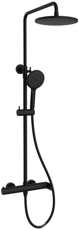 Смеситель для ванны(душа), со стационарным верхн.душем 25см., душевая лейка, шланг в компл., (цв.черный матовый), Rondo ZZ