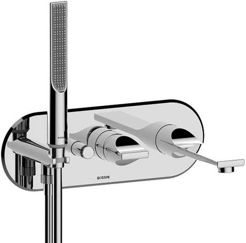 Смеситель для ванны встраиваемый в стену, наружная часть БЕЗ встраиваемой, лейка, шланг в компл., (цв.хром), Apice ZZ
