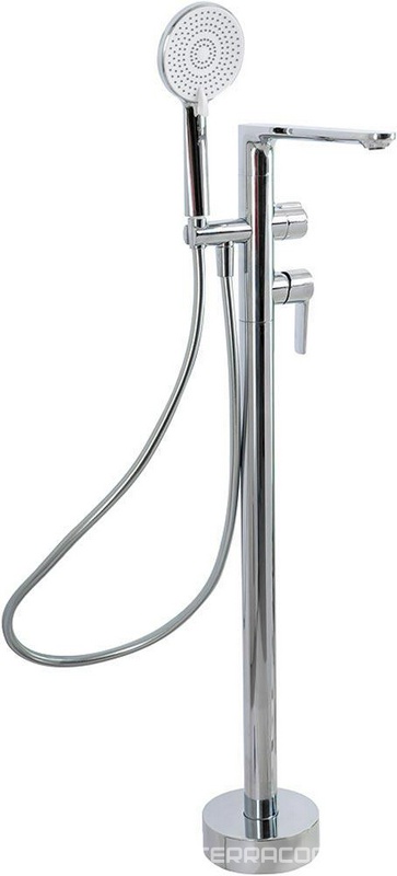 Смеситель напольный для ванны, с ручным душем и изливом, цв. хром