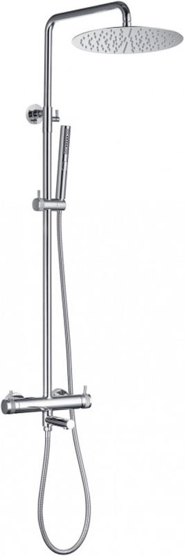 Смеситель для ванны/душа, со стационарным верхним душем d300мм., поворотный излив, душевая лейка, шланг в компл., (цв.хром), Priority ZZ