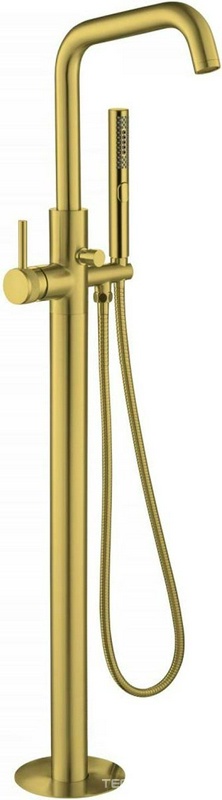 Смеситель для ванны, напольный, душевая лейка, шланг в компл., (цв.брашированное золото), Eco ZZ