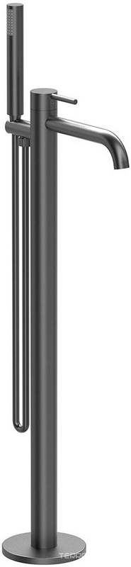 Смеситель для ванны, загругл. излив, напольный, душевая лейка, шланг в компл., (цв.черный матовый PVD), Cox ZZ