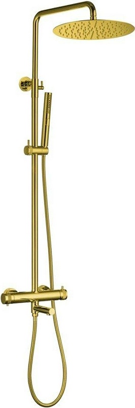 Смеситель для ванны/душа, со стационарным верхним душем d300мм., поворотный излив, душевая лейка, шланг в компл., (цв.золото браш.), Priority ZZ