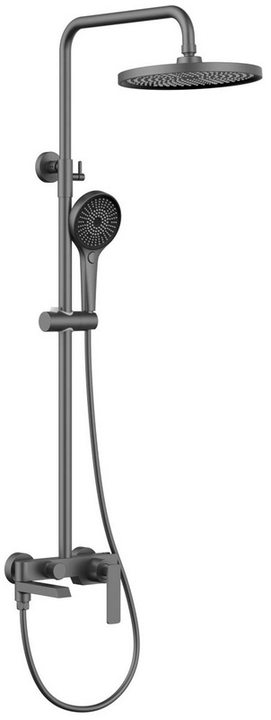 Смеситель для душа, со стационарным верхн.душем 25см., душевая лейка, шланг в компл., (цв.вороненая сталь), Vincea ZZ