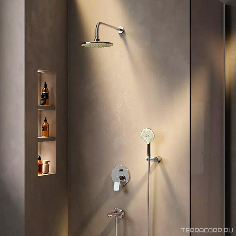 Душевой набор для ванны с душем встраиваемый с внутренней частью, (смеситель/верхний душ/ручной душ/излив), цв. хром ZZ AMPM X-Joy FB85A10020
