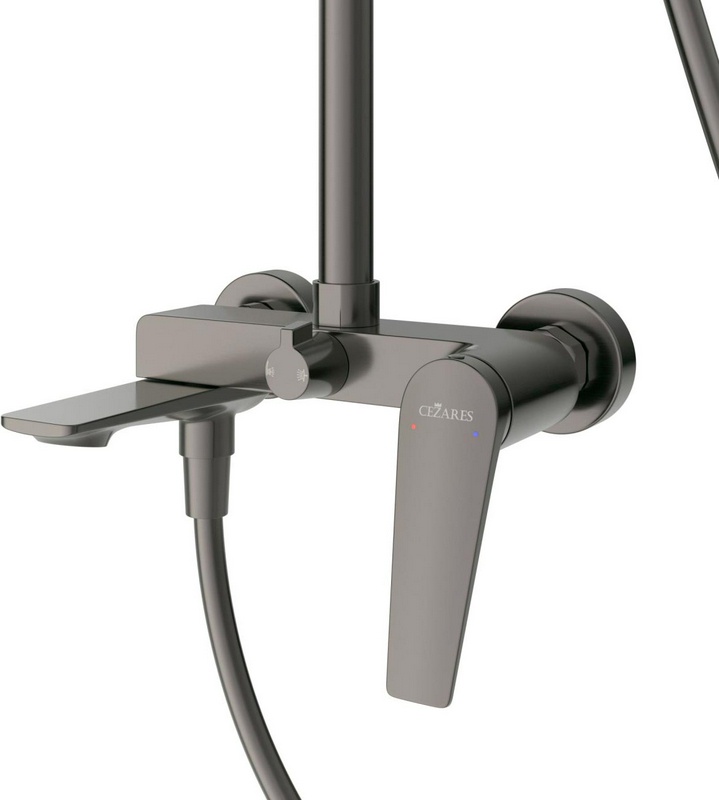 Смеситель для ванны(душа), со стационарным верхн.душем d25см., душевая лейка, шланг в компл., (цв.оружейная сталь), ZZ BelBagno Marino MARINO-VSCM-GM