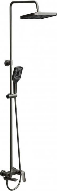 Смеситель для ванны(душа), со стационарным верхн.душем 31х21см., душевая лейка, шланг в компл., (цв.оружейная сталь), ZZ BelBagno Due DUE-VSCM-GM