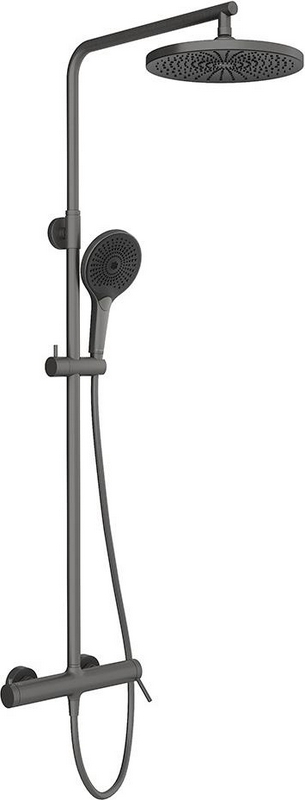 Смеситель-термостат для душа, со стационарным верхним душем пластик d255мм, ручн.душевая лейка, шланг в компл., (цв.оружейная сталь), ZZ Aqueduto Chuva CHU0345