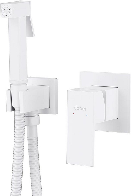 Смеситель совмещённый с гигиеническим душем, готовый комплект: лейка, шланг, скрытая часть, (цв.белый матовый), ZZ Abber Daheim AF8225W