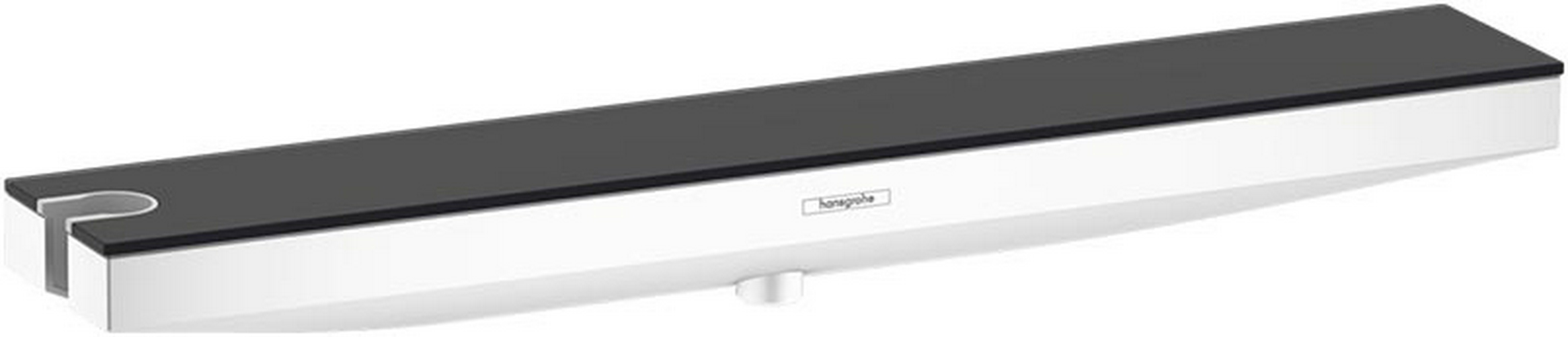 Настенный держатель с полкой, шланговое подсоединение с защитой от обратного тока 1/2" слева, (цв.матовый белый, полка цв.графитовый), ZZ Hansgrohe Rainfinity 26843700