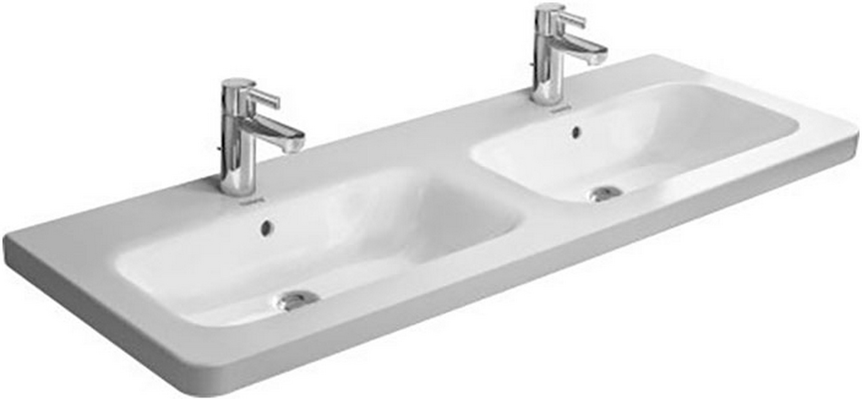 Раковина 1300х480мм, двойная, с 2 отв. для 2-х смесит, с переливом, для установки с мебелью, глазуровка снизу, ZZ Duravit DuraStyle 233813 00 00
