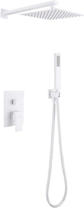 Душ.система встр.в стену:смеситель, стац.верхний душ 25х25см., шланг, лейка, кронштейн совмещ.с вых воды в компл., (цв.белый матовый), ZZ Abber Daheim AF8219W