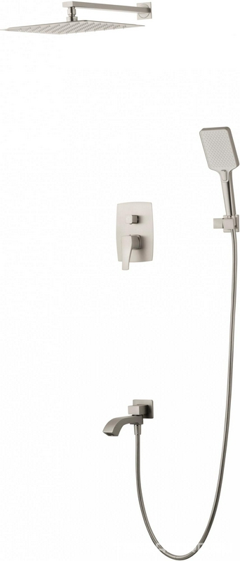 Душ.система встр.в стену: смеситель, стац.верхний душ 30х30см, излив, шланг, лейка, кронштейн совмещ.с вых воды в компл.,(цв.браш.никель), ZZ Wonzon & Woghand FLEX WW-88939072-BN