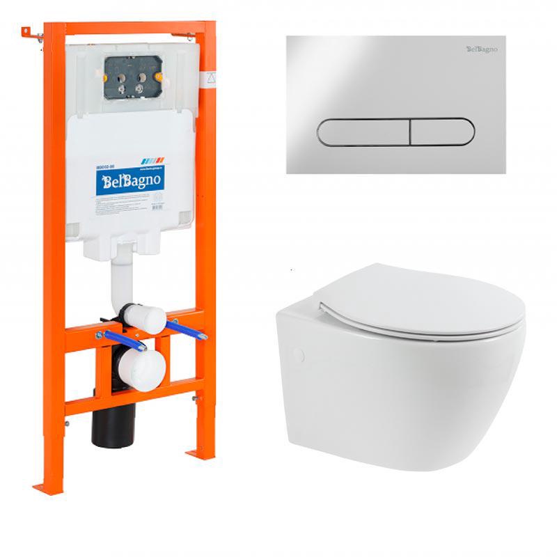Комплект: унитаз подвесной безободковый, сиденье с микролифтом, инсталляция для подв.унитаза, крепёж, клавиша смыва цв.хром, Prospero ZZ