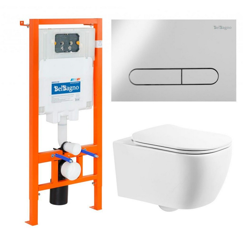 Комплект: унитаз подвесной безободковый, сиденье с микролифтом, инсталляция для подв.унитаза, крепёж, клавиша смыва цв.хром, Genova ZZ