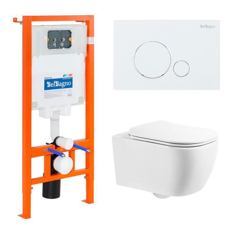 Комплект: унитаз подвесной безободковый, сиденье с микролифтом, инсталляция для подв.унитаза, крепёж, клавиша смыва цв.белый, Genova ZZ
