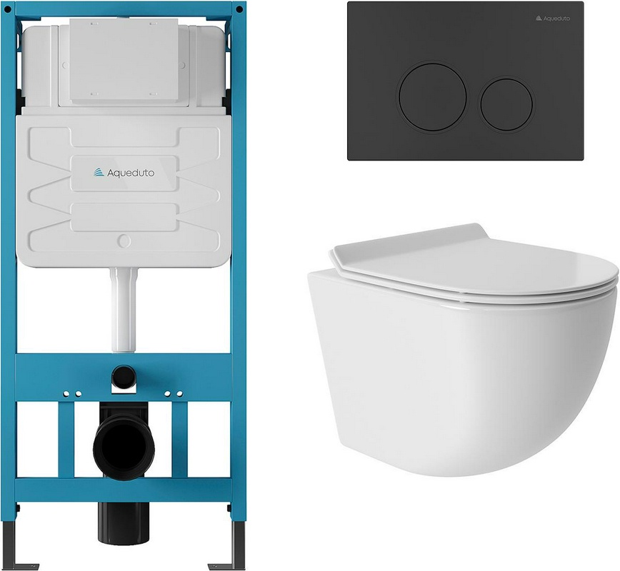 Комплект: Унитаз подвесной VENTAS +сиденье с микролифтом Ventas Slim SO цв.белый+инсталляция ATOM Line 410 +клавиша черная ZZ