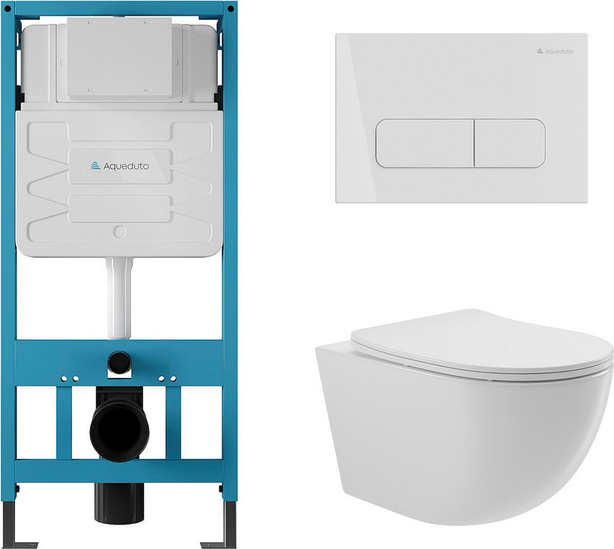 Комплект: Унитаз подвесной ALBIT + сиденье с микролифтом Top Slim цв.белый+ инсталляция NOVUM +клавиша L1, цв.белый ZZ