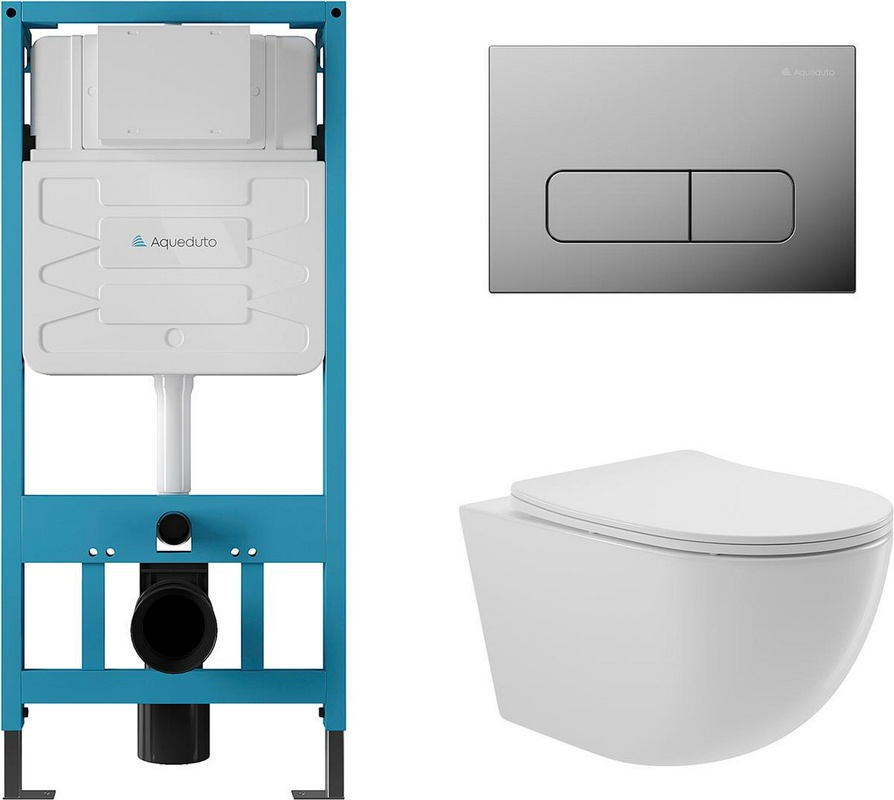Сет S20: монтажная рама, кнопка смыва (цвет хром), унитаз подвесной, крышка с микролифтом ZZ