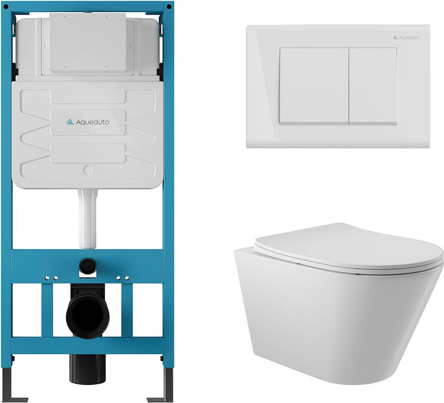 Комплект: Унитаз подвесной ALBIT + сиденье с микролифтом Top Slim цв.белый+ инсталляция NOVUM +клавиша L1, цв.белый ZZ