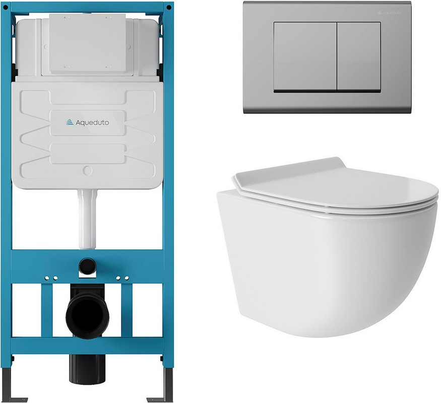 Сет S20: монтажная рама, кнопка смыва (цвет хром), унитаз подвесной, крышка с микролифтом ZZ