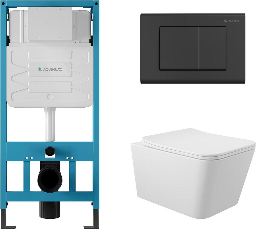 Компл.: унитаз подвесн.,безободк.,525х360мм,цв.белый глянц., сиденье с микролиф,,инстал. д/унит., крепёж, клавиша смыва Retangulo цв.черный мат,Ovo ZZ