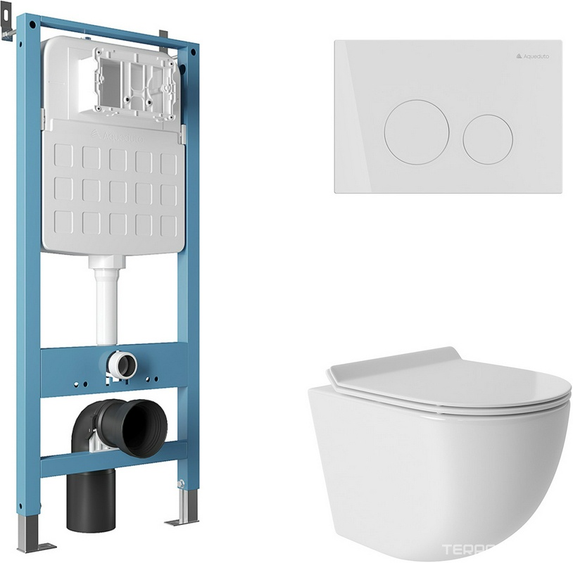 Компл.: унитаз подвесн.,смыв Tornado, 480х360мм, цв.белый глянц., сиденье с микрол,, инстал.д/унит, крепёж, клавиша смыва CIRCULO цв.белый гл., ZZ Aqueduto Ovo AQDS085T