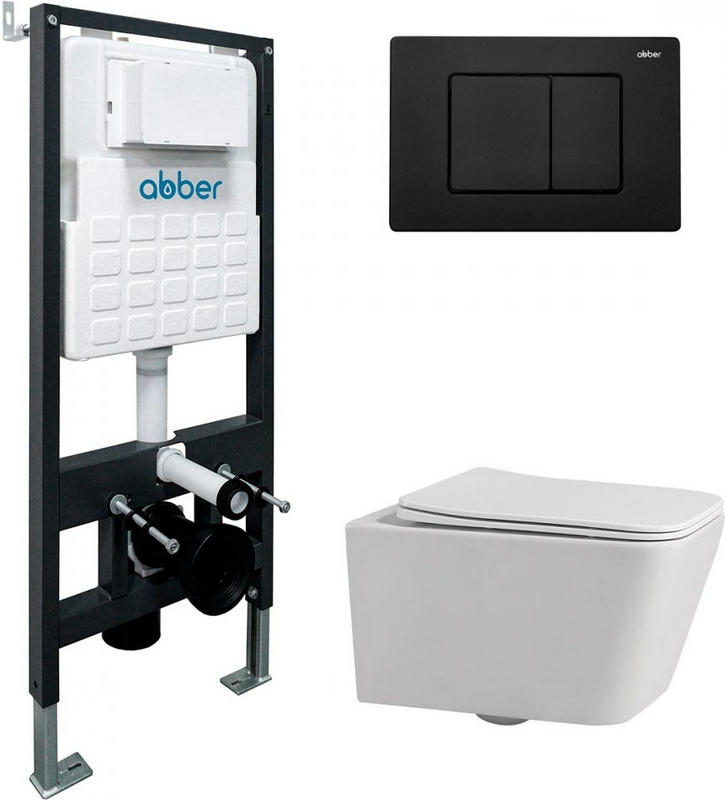 Комплект: унитаз подвесн безободковый, сиденье с микрол, цв.белый глян. инсталляция для подв.унитаза, крепёж, клавиша смыва цв.,черный мат, Rechtec ZZ Abber Rechteck AC1201-AC0105-AC0120MB