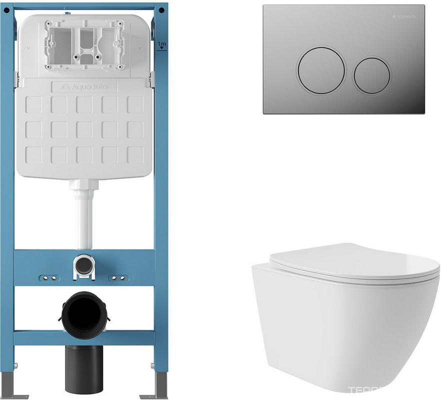 Комплект: унитаз подвесной безободковый, сиденье с микролифтом, инсталляция для подв.унитаза, крепёж, клавиша смыва цв.хром, Acqua ZZ